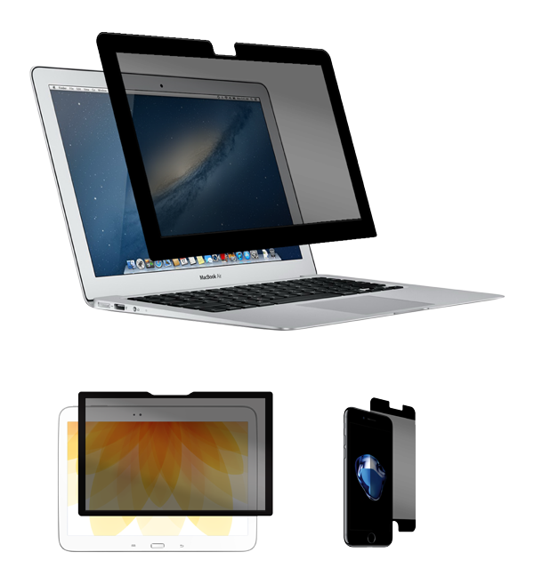 Your business should be your business and no one else’s. Protect the information on your device from visual hacking with a Shadow On-The-Go Edition removable and reusable privacy screen. The Shadow On-The-Go Edition allows you to place a privacy screen over your device when you are in a public area or a location where you don’t want others to see your information. Now you can use your laptop on a plane without the person in the seat beside you seeing everything you are doing.